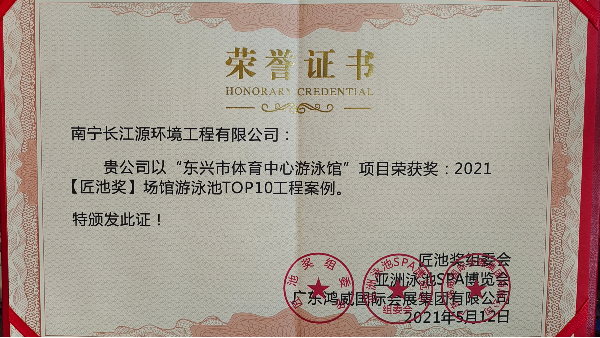 南寧長江源榮獲“2021匠池獎—場館游泳池Top10工程案例”
